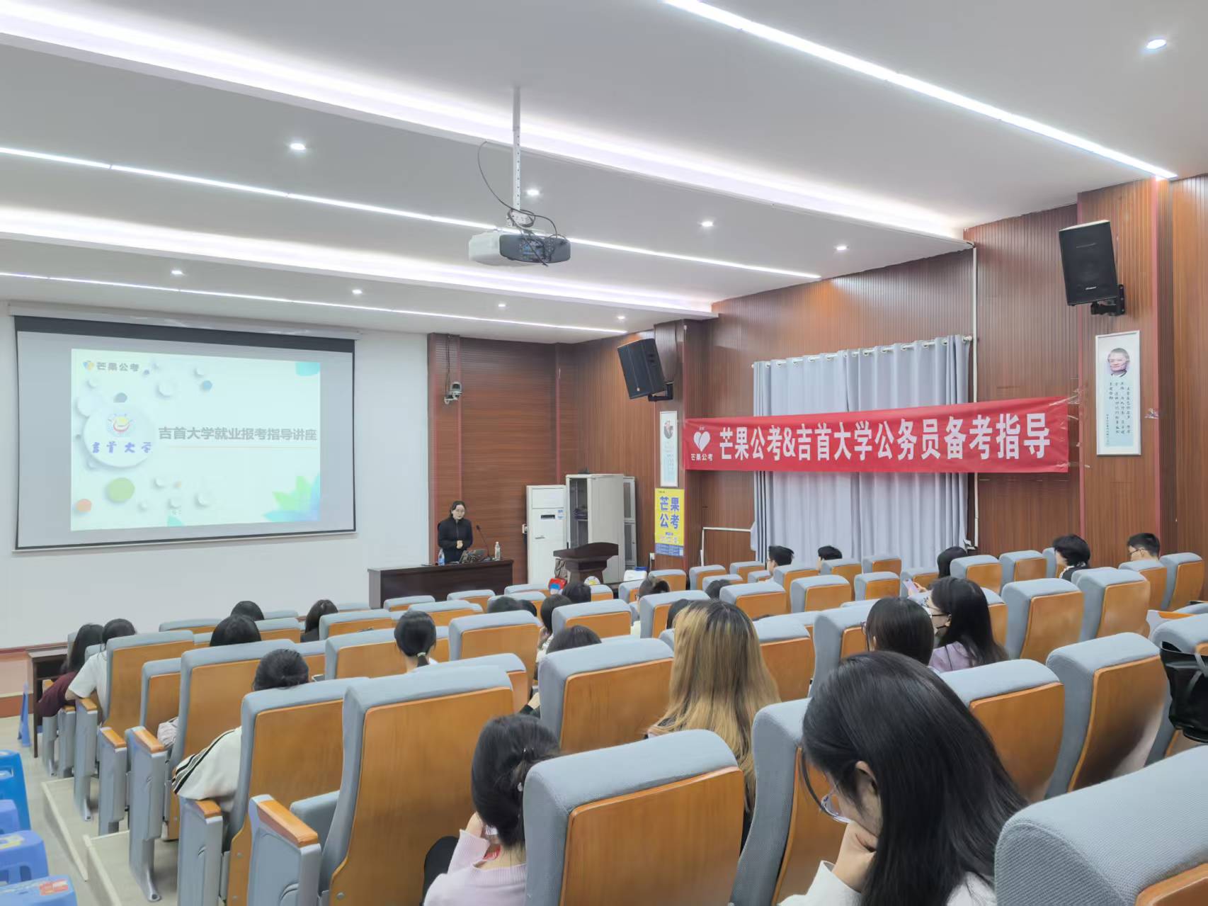 为助力有志青年明确公务员备考方向,我校联合芒果公考于2025年10月14日在吉首大学砂子坳校区第三教学楼举办公务员规划及备考指导专场活动。本次活动面向本科大三、大四年级及研究生,内容涵盖政策解读讲座、一对一选岗咨询及简历优化指导,吸引众多意向考生参与。